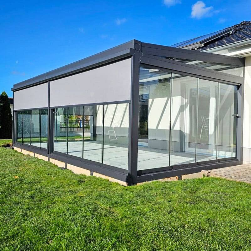 | Optionen | Integrierte Beschattung (Dach- und Senkrechtmarkisen), automatische Lüftungssysteme, Schiebe- oder Faltelemente |